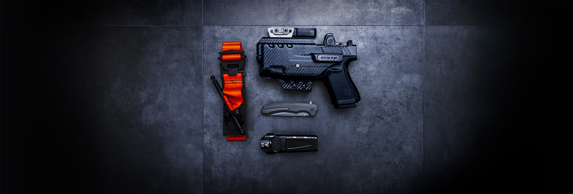 Quick to have all the tools at the ready, The Gearhead has each piece of EDC kit possible. Naturally, the ARC holster is the best choice with both optic and light compatibility. Pair it also with one of the Streamlight TLR-7 weapon-mounted lights for optimal illumination. Additionally, a high-quality folder knife like the GW1, a pocket light with range like the SureFire Stilleto, and lastly, a SOF Tourniquet.